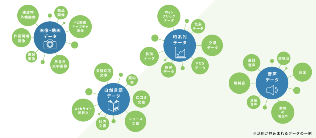 機械学習の様々な領域に専門性を持つプロフェッショナルチームが、画像、音声、自然言語など、あらゆるデータを活用したAIソリューションを開発いたします。